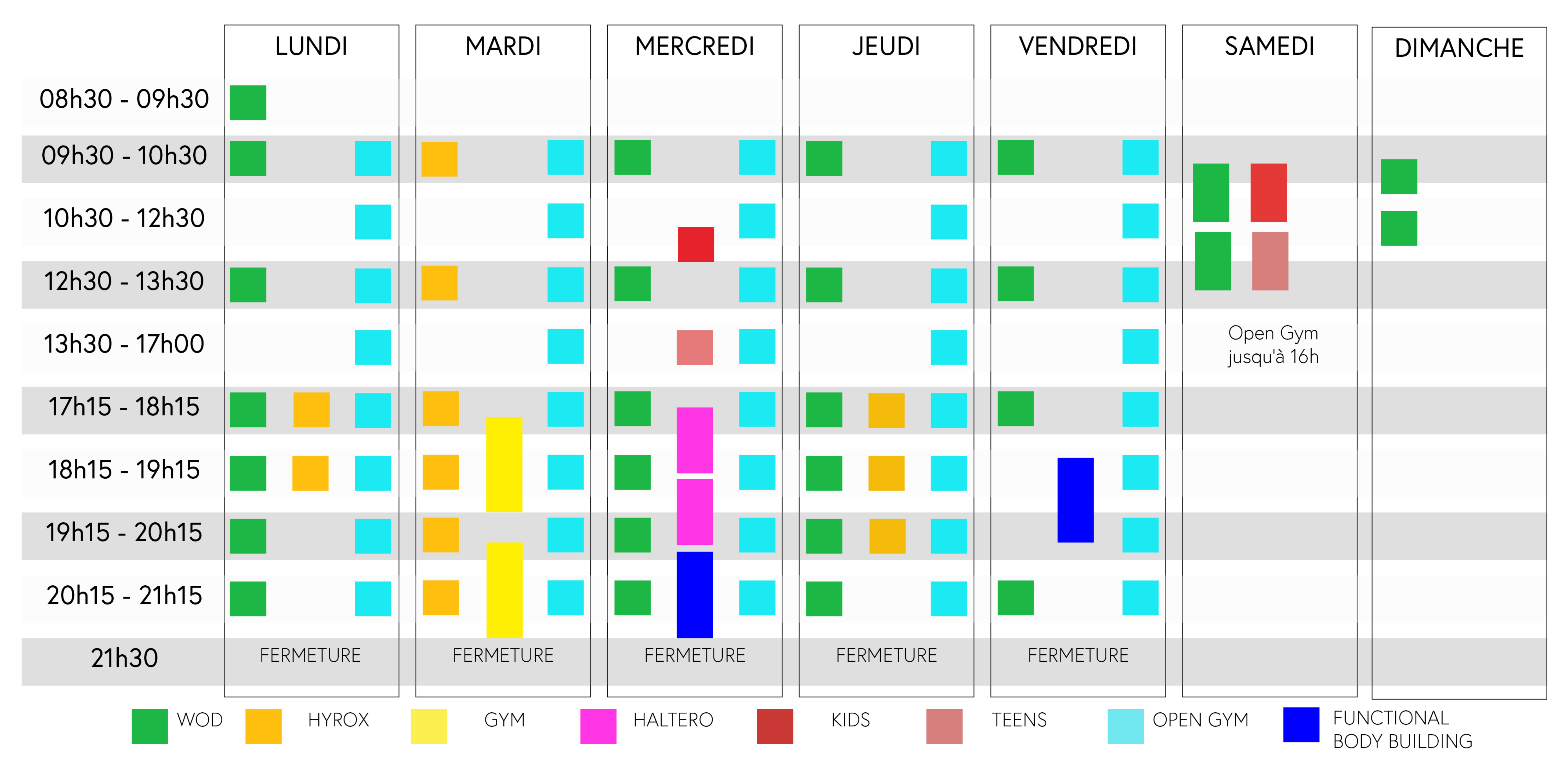 Le Cross-Training est une méthode d’entraînement complète qui combine force, endurance, agilité et mobilité à travers des exercices variés et fonctionnels. Accessible à tous les niveaux, il permet de se dépasser, de progresser rapidement et de renforcer aussi bien le corps que l’esprit.